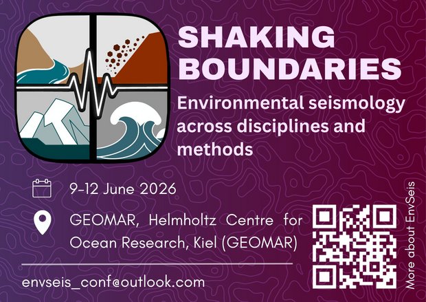 We are excited to announce the international conference “Shaking Boundaries: Environmental seismology across disciplines and methods” taking place from 9–12 June 2026 at GEOMAR, Helmholtz Centre for Ocean Research Kiel.